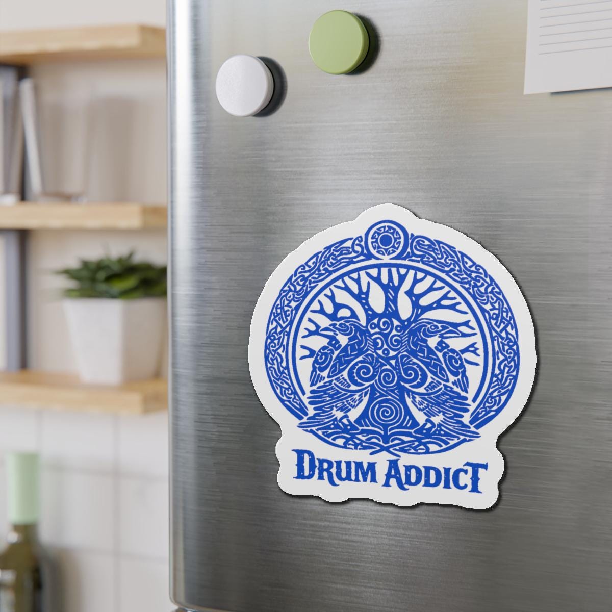 This die-cut magnet wears the Yggdrasil logo like a talisman. Bold pagan emblems curl and intertwine in the design used by Drum Addict Apparel, delivering a raw, ritual energy you can mount on any magnetic surface. It settles onto your fridge, locker, or board and becomes a small, steady reminder of roots, rhythm, and myth. The matte finish keeps colors deep and muted while preserving the hand-drawn vibe. For drummers, ritualists, and anyone who keeps ancient symbols close, this magnet feels like a quiet signal—familiar, weather-ready, and built to last through practice sessions, gigs, and daily life.