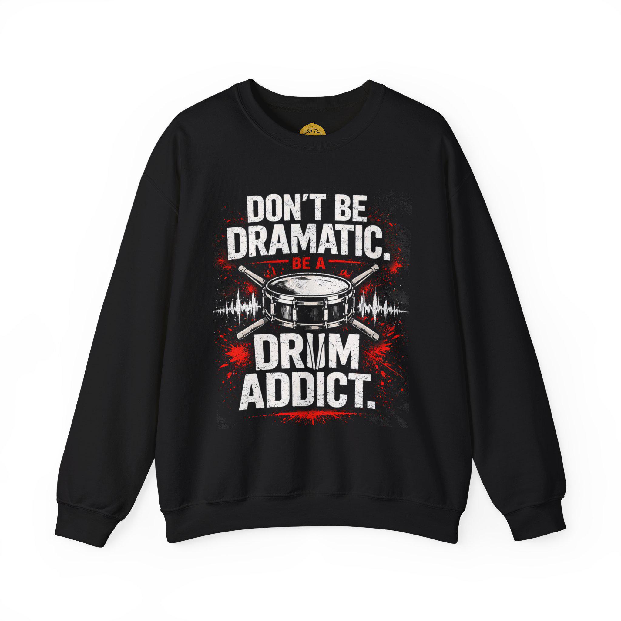 This cozy crewneck pulls the energy of the drumline into everyday wear. A bold, distressed graphic centers on a snare drum with pulse-like waveforms and splashes of red — a visual heartbeat for anyone who lives for rhythm. The mid-weight cotton-poly blend keeps the shape while the ribbed collar and cuffs hold up through rehearsals, late-night jams, and weekend hangouts. It reads like a subtle membership card for drummers: worn on rehearsals, tossed on after practice, or layered under a jacket for casual gigs. The message is playful but proud — a quiet shout-out to anyone who counts the beats, carries sticks in their bag, and finds calm in a steady groove.